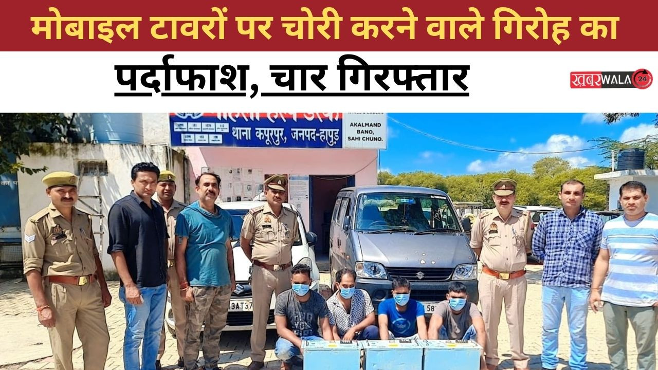 Crime Khabarwala 24 News Hapur : यूपी के जनपद हापुड़ की थाना कपूरपुर पुलिस ने थानाक्षेत्र में घटित जियो मोबाइल टावर से बैटरी चोरी की वारदात का पर्दाफाश किया है। पुलिस ने मुठभेड़ के बाद टावरों से बैटरी चोरी करने वाले गिरोह के गैंग लीडर सहित चार आरोपियों को गिरफ्तार किया है।