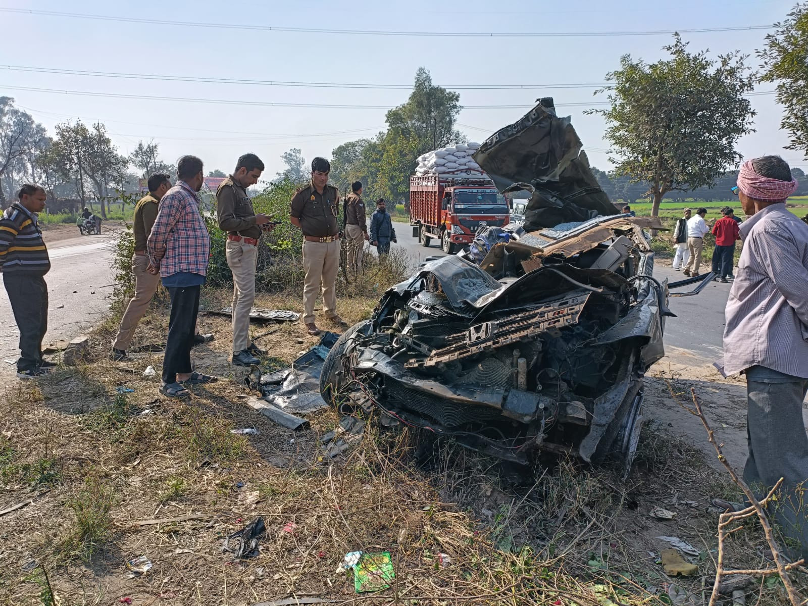 मंगलवार की दोपहर को एक कार हापुड़ की ओर से सिंभावली जा रही थी। जैसे ही कार कुचेसर रोड चौपला पर पहुंची तो अचानक गाड़ी का टायर फट गया। कार अनियंत्रित होकर सड़क के दूसरी ओर पहुंच गई और सामने से आ रहे ट्रक से कार की जोरदार भिड़ंत हो गई। दुर्घटना इतनी जबरदस्त थी कि कार के परखच्चे उड़े गए। दुर्घटना होते ही आसपास के लोग मौके पर पहुंचे और पुलिस को सूचना दी। सूचना मिलने पर पुलिस मौके पर पहुंच गई।