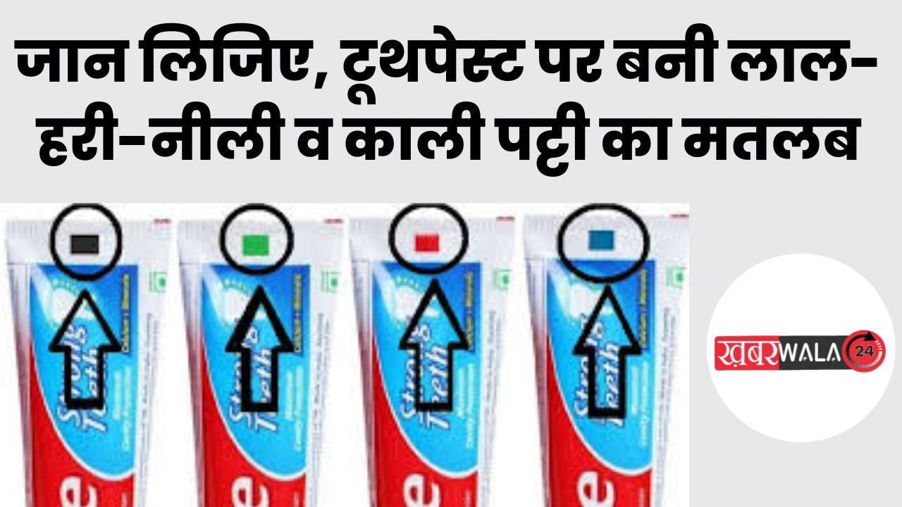 Khabarwala 24 News New Delhi :Toothpaste Truth & Myth गांव हो या शहर लोग सुबह उठते ही सबसे पहला काम दांतों की सफाई करते हैं। इसके लिए टूथपेस्ट ही सबसे सरल और एकमात्र जरिया है। सोशल मीडिया पर टूथपेस्ट को लेकर यह दावा किया जा रहा है कि इस पर बने पट्टियों के रंग के आधार पर उसमें मिलाए जाने वाली चीजों का वर्गीकरण किया जाता है। टूथपेस्ट पर सबसे नीचे की ओर अमूमन चार रंगों की पट्टियां दिखती हैं।