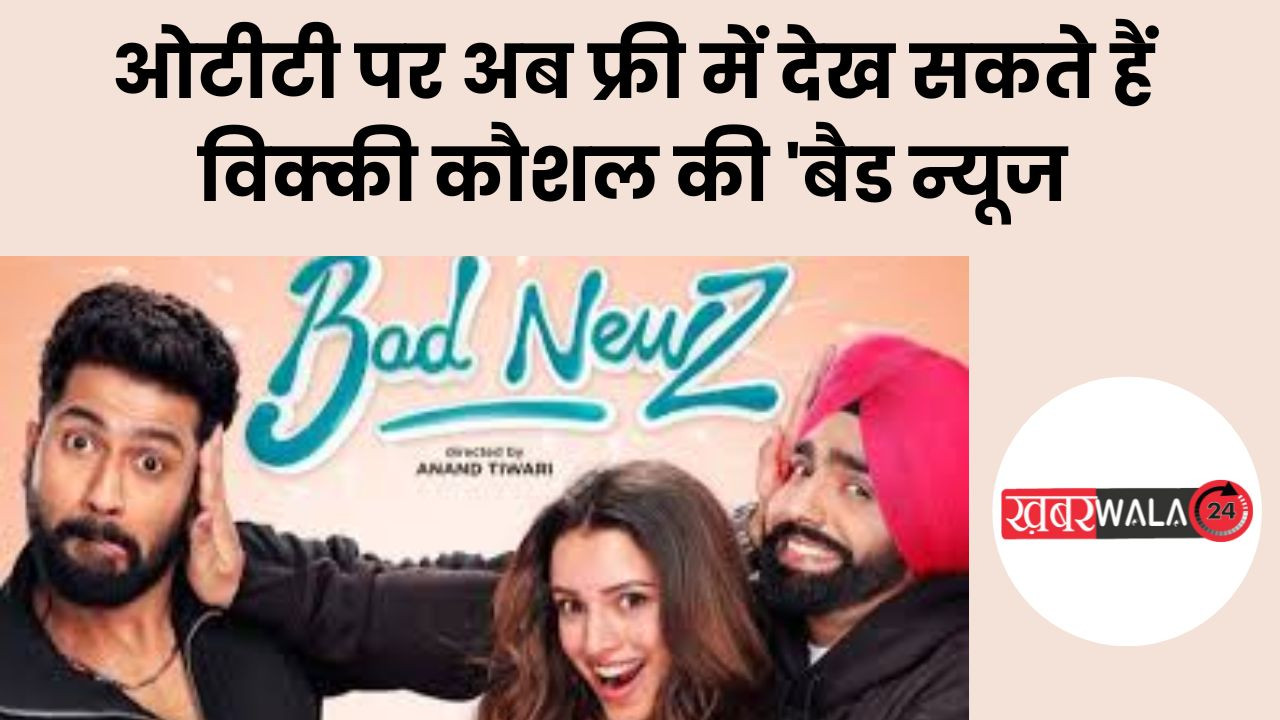 Khabarwala 24 News New Delhi : Bad Newz OTT Release विक्की कौशल की फिल्म बैड न्यूज को सिनेमाघरों पर बहुत पसंद किया गया था। फिल्म के नाम के अलावा इसमें बैड कुछ भी नहीं था। जिसने भी ये फिल्म देखी थी हर कोई इसका दीवाना हो गया था।