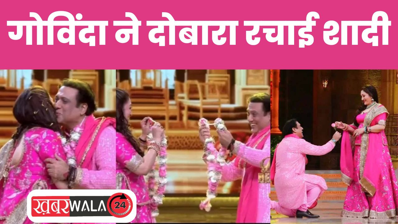 Khabarwala 24 News New Delhi: Dance Deewane 4 90 के दौर में अपनी कॉमेडी और डांस से फैंस के दिलों पर राज करने वाले बॉलीवुड एक्टर गोविंदा ने एक बार फिर शादी कर ली है। उनकी शादी की तस्वीरें सोशल मीडिया पर जमकर वायरल हो रही हैं। जाहिर है कि गोविंदा और उनकी पत्नी सुनीता आहूजा की लव स्टोरी के किस्से किसी से छिपे नहीं हैं। इस सबके बीच एक्टर की शादी ने सोशल मीडिया पर तहलका मचा दिया है। शादी की तस्वीरें भी इंटरनेट पर जमकर वायरल हो रही हैं। चलिए जानते हैं कि आखिर क्या है माजरा?