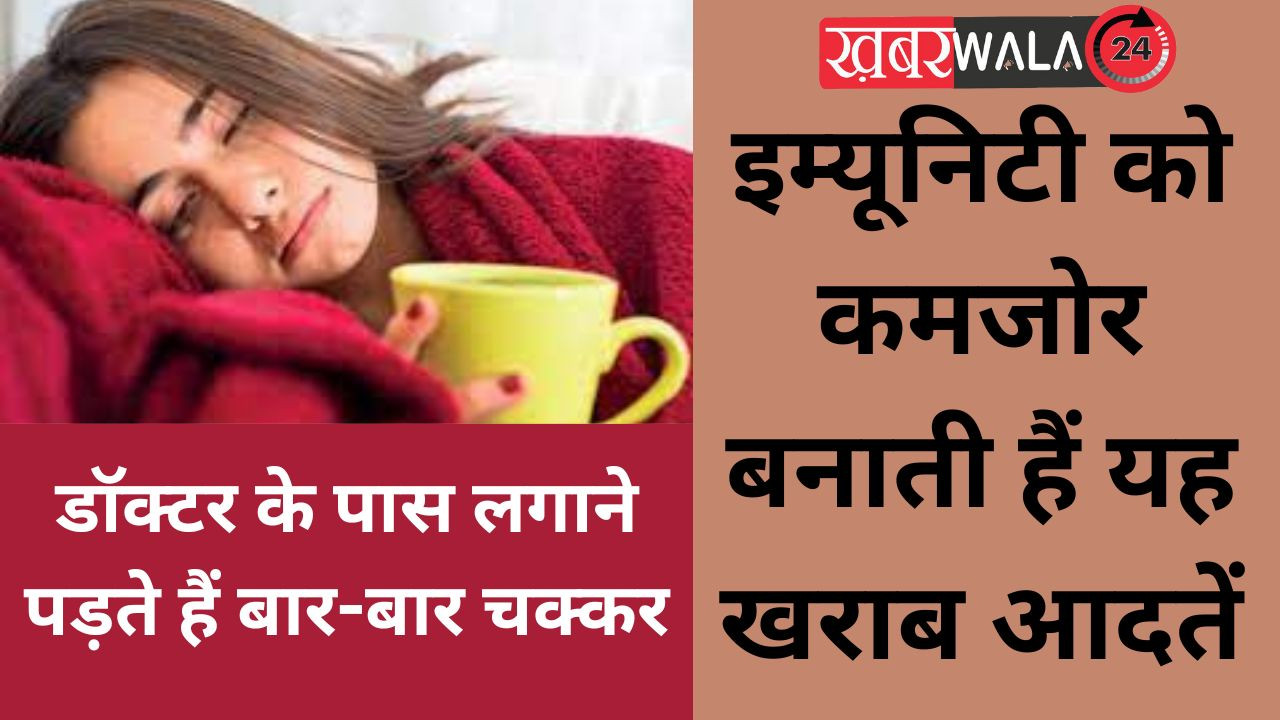 Khabarwala 24 News New Delhi: Health Tips शरीर की इम्यूनिटी कमजोर होने पर हम जल्दी बीमार पड़ जाते हैं। सर्दियों में अधिकतर कई लोगों की इम्यूनिटी कमजोर हो जाती है, जिसके चलते हमें सर्दी-जुकाम समेत कई वायरल इंफेक्शन होने का खतरा रहता है। जानते है उन खराब आदतों के बारे में जिसके कारण हमारा इम्यून सिस्टम कमजोर होने लगता है.