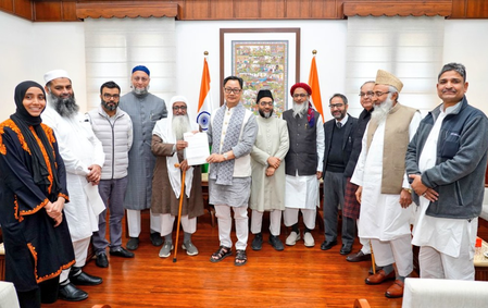 नई दिल्ली, 11 दिसंबर (khabarwala24)। ऑल इंडिया मुस्लिम पर्सनल लॉ बोर्ड के एक प्रतिनिधिमंडल ने गुरुवार को केंद्रीय अल्पसंख्यक कार्य मंत्री किरेन रिजिजू से मुलाकात की।