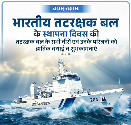 केंद्रीय गृह मंत्री अमित शाह ने अपने सोशल मीडिया प्लेटफॉर्म ‘एक्स’ पर लिखा, “भारतीय तटरक्षक के स्थापना दिवस पर उनके बहादुर जवानों को शुभकामनाएं। समुद्र में आपकी शांत निगरानी, अटूट साहस और कर्तव्य के प्रति अटूट समर्पण हर दिन भारत की समुद्री सीमाओं को सुरक्षित रखता है। राष्ट्र की सेवा में अपने प्राणों की आहुति देने वाले शहीदों को मेरा नमन।”