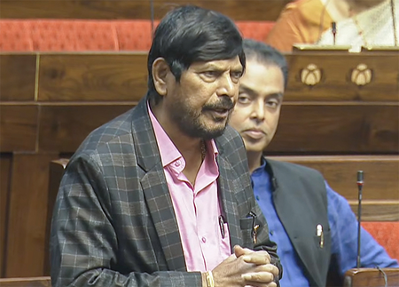 केंद्रीय बजट पर चर्चा में हिस्सा लेते हुए, रिपब्लिकन पार्टी ऑफ इंडिया (आरपीआई) के नेता, जो अपने खास राइमिंग स्टाइल के लिए जाने जाते हैं, ने प्रधानमंत्री नरेंद्र मोदी और वित्तमंत्री निर्मला सीतारमण की तारीफ की। उन्होंने सरकार की नीति की विपक्ष की आलोचना का जवाब देने के लिए कविता का इस्तेमाल किया।