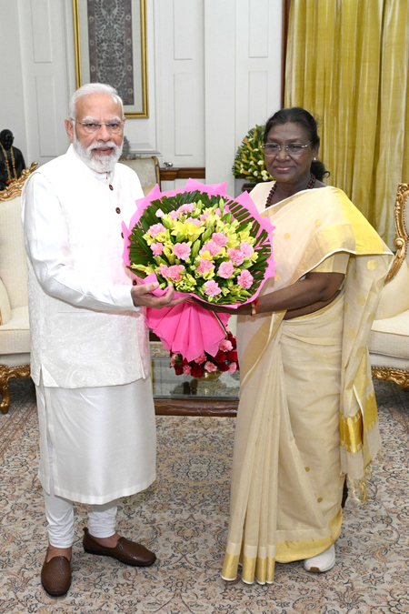 प्रधानमंत्री मोदी सोमवार शाम को राष्ट्रपति भवन पहुंचे और द्रौपदी मुर्मू से मुलाकात की। राष्ट्रपति भवन ने अपने आधिकारिक ‘एक्स’ हैंडल से पोस्ट किया, जिसमें लिखा, “प्रधानमंत्री नरेंद्र मोदी ने राष्ट्रपति भवन में राष्ट्रपति द्रौपदी मुर्मू से मुलाकात की और दीपावली की शुभकामनाएं दीं।”