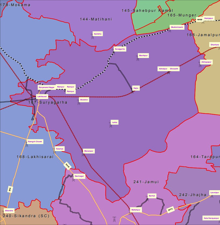 पटना, 12 अक्टूबर (khabarwala24)। सूर्यगढ़ा विधानसभा सीट, बिहार के लखीसराय जिले में स्थित है और यह मुंगेर लोकसभा क्षेत्र का हिस्सा है। यह विधानसभा क्षेत्र तीन प्रखंडों पिपरिया, सूर्यगढ़ा और चानन से मिलकर बना हुआ है। भौगोलिक दृष्टि से सूर्यगढ़ा लखीसराय जिला मुख्यालय से लगभग 8 किलोमीटर पश्चिम में स्थित है।