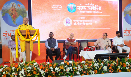 डॉ. भागवत नागपुर के रेशीमबाग स्मृति भवन परिसर स्थित महर्षि व्यास सभागार में आयोजित एक विशेष लोकार्पण समारोह को संबोधित कर रहे थे। यहां संघ की स्वरबद्ध प्रार्थना और उसके विभिन्न भारतीय भाषाओं में अर्थ सहित अभिनव ध्वनिचित्रफीति (ऑडियो-वीडियो) का विमोचन किया गया। इस रचना में प्रसिद्ध संगीतकार राहुल रानडे, प्रख्यात गायक शंकर महादेवन और मशहूर उद्घोषक हरीश भिमानी का विशेष योगदान रहा।
