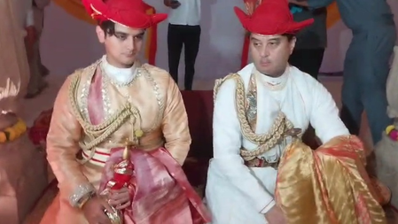 केंद्रीय मंत्री ज्योतिरादित्य सिंधिया और पुत्र महान आर्यमन सिंधिया राजसी वेशभूषा पहनकर देवघर पहुंचे और करीब आधे घंटे तक पूजा अर्चना की। इसके बाद रियासतकालीन शस्त्र की पूजा की गई।
