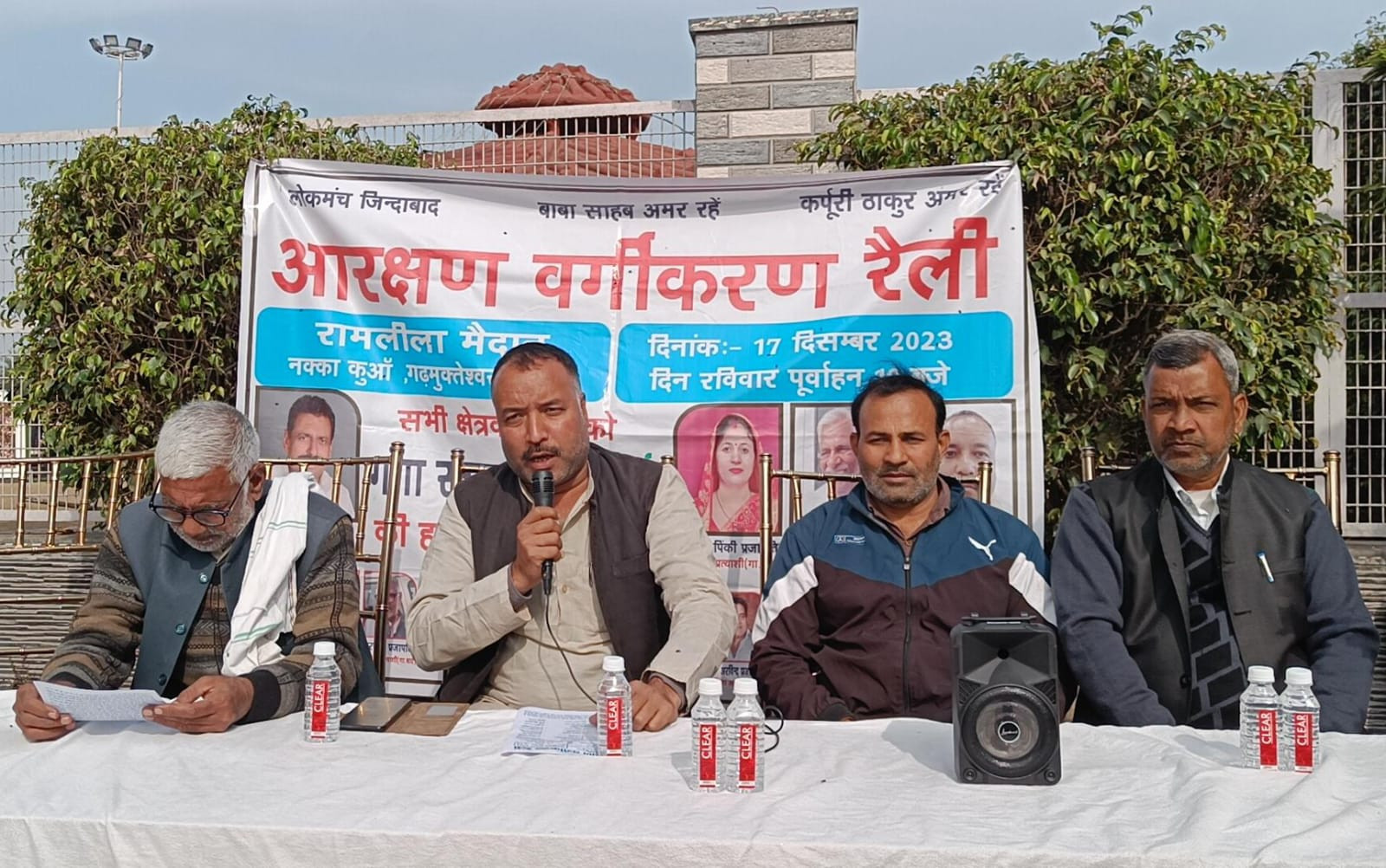 आरक्षण वर्गीकरण रैली। आरक्षण वर्गीकरण रैली को लेकर वीरेंद्र सिंह प्रजापति पूर्व विधानसभा प्रत्याशी गढ़मुक्तेश्वर ने बताया कि लोकमंच)राष्ट्रीय भागीदारी (पार्टी) ने