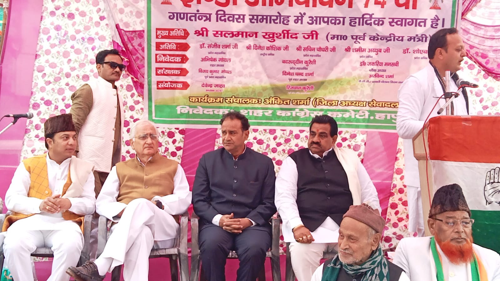 खबरवाला 24 न्यूज हापुड़: पूर्व केंद्रीय मंत्री और कांग्रेस के वरिष्ठ नेता सलमान खुर्शीद ने कहा कि राहुल गांधी की भारत जोड़ो यात्रा पूरे देश में रंग ला रही हैं। कन्याकुमारी से भारत मां के चरण कमलों की वंदनों करके माथे पर माटी लगाकर जो राष्ट्रव्यापी हवन शुरू किया था वो अब अपने लक्षित पड़ाव पर पहुंचने जा रहा हैं। जहां वो भारतमाता के मस्तक कश्मीर की धरती पर अपने परिश्रम से तिलक करेंगे।