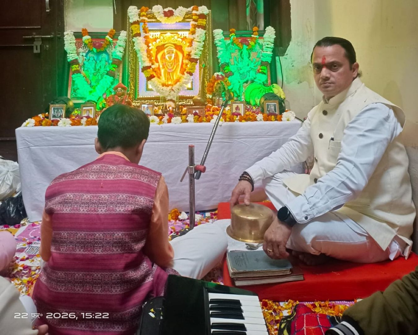 कीर्तन की शुरुआत बाबा वाले गुरुदेव सुशांत तोमर ज ने भगवान राम के मधुर भजनों से की। उनके सुमधुर स्वर में प्रस्तुत भजनों ने उपस्थित श्रद्धालुओं को भाव-विभोर कर दिया। इसके बाद गुरु जी ने “सांसों की माला पर सिमरन हूं मैं बाबा तेरा नाम”, “दुनिया चले ना श्री राम जी के बिना” और “लहर-लहर लहराए झंडा बजरंग बली का” जैसे लोकप्रिय भजनों की प्रस्तुति दी, जिन पर श्रद्धालु झूम उठे। पूरे कार्यक्रम के दौरान भगवान राम, श्री कृष्ण और भगवान शिव के भजनों से वातावरण गूंजता रहा।