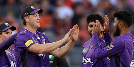 बारिश से प्रभावित मुकाबले के दौरान ओवरों की कटौती की गई। टॉस गंवाकर बल्लेबाजी करने उतरी होबार्ट हरिकेंस ने 10 ओवरों में 5 विकेट खोकर 114 रन बनाए।