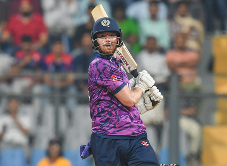 मंगलवार को वानखेड़े स्टेडियम में जारी मुकाबले में नेपाल के कप्तान रोहित पौडेल ने टॉस जीतकर स्कॉटलैंड को पहले बल्लेबाजी के लिए आमंत्रित किया। स्कॉटलैंड को जॉर्ज मुन्से और माइकल जोन्स ने शानदार शुरुआत दिलाई। दोनों सलामी बल्लेबाजों ने 10 ओवरों में 80 रन जुटाए।