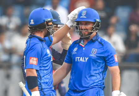 इसके जवाब में इटली ने ‘मोस्का बंधुओं’ के बीच अटूट साझेदारी के साथ नेपाल के खिलाफ 10 विकेट से यादगार जीत दर्ज की। जस्टिन मोस्का और एंथनी मोस्का ने महज 12.4 ओवरों में 124 रन जोड़कर टीम को ऐतिहासिक जीत दिलाई। जस्टिन मोस्का 44 गेंदों में 3 छक्कों और 4 चौकों के साथ 60 रन बनाकर नाबाद रहे, जबकि एंथनी ने 32 गेंदों में नाबाद 62 रन बनाए। उनकी इस पारी में 6 छक्के और 3 चौके शामिल थे।