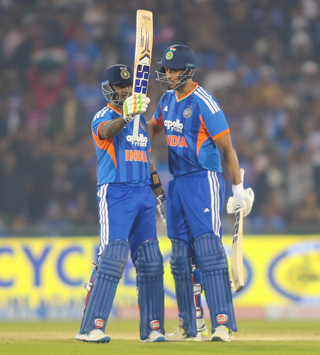 इस मुकाबले में सूर्या ने 37 गेंदों में 4 छक्कों और 9 चौकों के साथ 82 रन की नाबाद पारी खेली। इस दौरान ईशान किशन के साथ 122 रन, जबकि शिवम दुबे के साथ 81 रन की अटूट साझेदारी की।