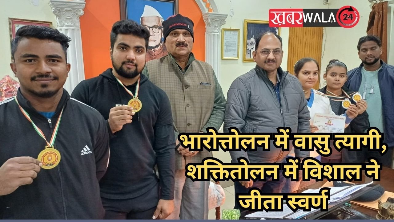 Khabarwala 24 News Hapur: (SSV PG College ) सीसीएसयू की अंर्तमहाविद्यालय प्रतियोगिताएं गाजियाबाद के एमएमएच कॉलेज में आयोजित हुई। इसमें भारोत्तोलन में एसएसवी पीजी कॉलेज के छात्र वासु त्यागी ने स्वर्ण पदक जीता। जूडो में भी छात्रों ने पदक जीतकर जिले का नाम रोशन किया।