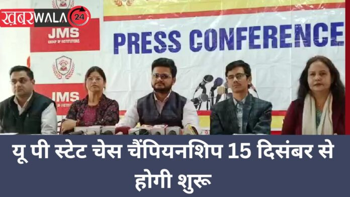 Khabarwala 24 News Hapur: Chess Championship जेएमएस वर्ल्ड स्कूल में यू पी स्टेट चेस चैंपियनशिप अंडर 15 ओपन 2023-24 का आयोजन 15 दिसंबर से तीन दिवसीय चेस प्रतियोगिता का आयोजन किया जाएगा।