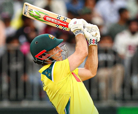 लक्ष्य का पीछा करने उतरी ऑस्ट्रेलिया की शुरुआत खराब रही थी। टीम ने ट्रेविस हेड (8 रन) और मैट शॉर्ट (8 रन) का विकेट जल्दी खो दिया। लेकिन इसके बाद मार्श और विकेटकीपर बल्लेबाज जोश फिलीप ने तीसरे विकेट के लिए 55 रन की साझेदारी कर जीत की बुनियाद रखी। फिलीप 29 गेंद पर 2 छक्के और 3 चौके की मदद से 37 रन बनाकर आउट हुए। रेनशॉ 24 गेंद पर 21 रन बनाकर नाबाद रहे। मार्श 52 गेंद पर 3 छक्के और 2 चौकों की मदद से 46 रन बनाकर नाबाद रहे।