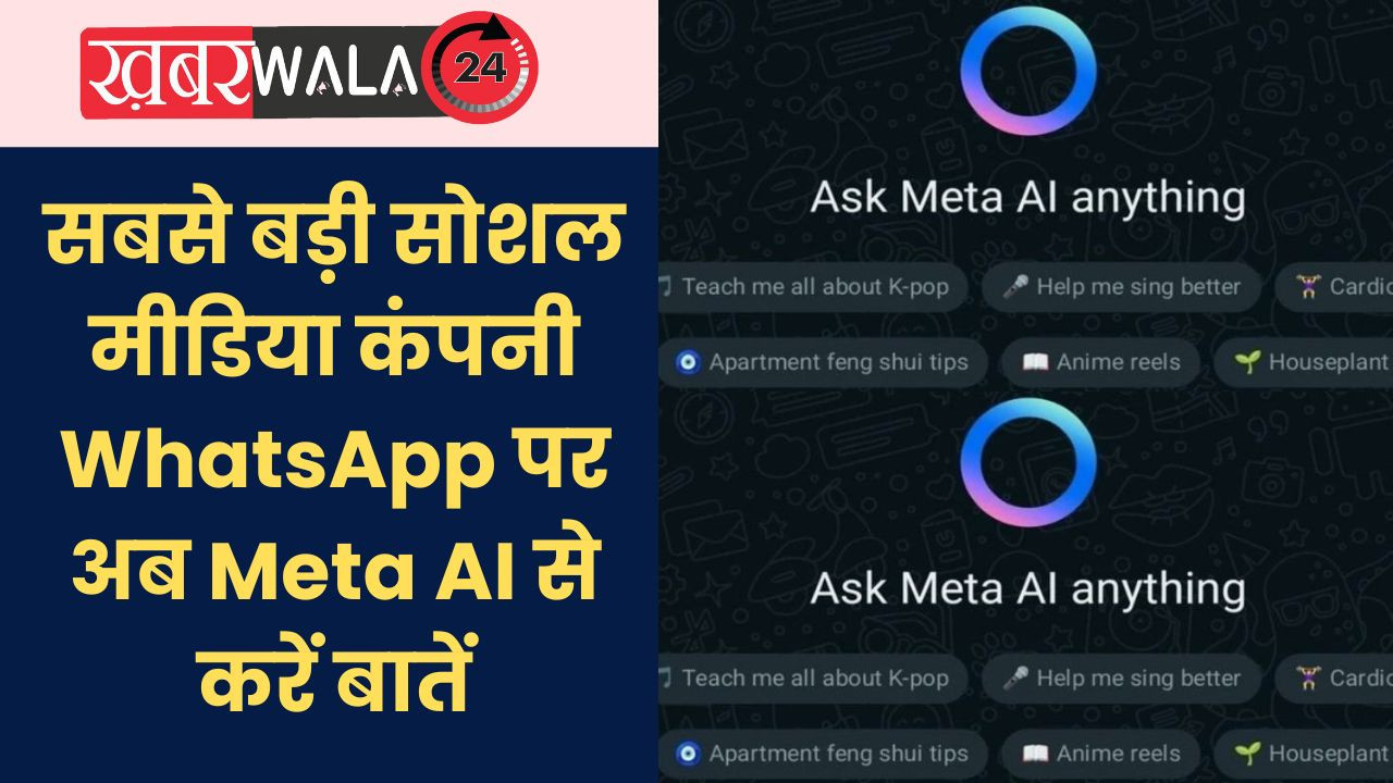 Khabarwala 24 News New Delhi : Meta AI on WhatsApp दुनिया की सबसे बड़ी सोशल मीडिया कंपनी मेटा की ओर से बीते दिनों Meta AI नाम से नए जेनरेटिव AI पेश की गई है। इस सेवा का फायदा अब मेटा फैमिली के ऐप्स (WhatsApp, Instagram और Messenger वगैरह) में यूजर्स को मिलेगा। वॉट्सऐप में चुनिंदा यूजर्स को इसका ऐक्सेस दिया जा रहा है और वे ग्रुप चैट्स में AI की मदद से मेसेज या रिप्लाई लिख सकते हैं। आइए जानते हैं कि आप Meta AI से बातें कैसे कर सकते हैं। बाकी जेनरेटिव AI सेवाओं की तरह ही Meta AI भी अलग-अलग विषयों पर बातें कर सकता है, सुझाव दे सकता है और आपके सवालों के जवाब दे सकता है। इसके अलावा कोई मेसेज या रिप्लाई लिखने से लेकर फोटोज जेनरेट करने और मेसेज ट्रांसलेट करने जैसे काम भी आसानी से किए जा सकते हैं। जल्द ही यूजर्स को चैट विंडो में यह लाइट ब्लू और पिंक शेड वाली रिंग आइकन के साथ दिखेगा। अभी यह केवल उन्हीं मेसेज पर जवाब दे रहा है, जिसमें इसे मेंशन किया जा रहा है।