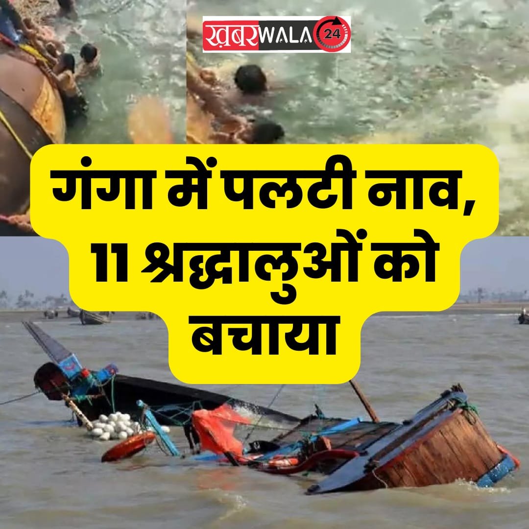 Hapur News Khabarwala 24 News Garhmukteshwar(Hapur): तीर्थ नगरी ब्रजघाट में हरियाणा से आए 11 श्रद्धालुओं से भरी एक नाव दूसरी नाव से टकराने से गंगा में पलट गई। गनीमत रही कि जहां नाव पलटी वहीं पर गोताखोर बैठे हुए थे। निजी गोताखोरों ने तत्काल गंगा में कूदकर 11 श्रद्धालुओं की जान बचा ली।