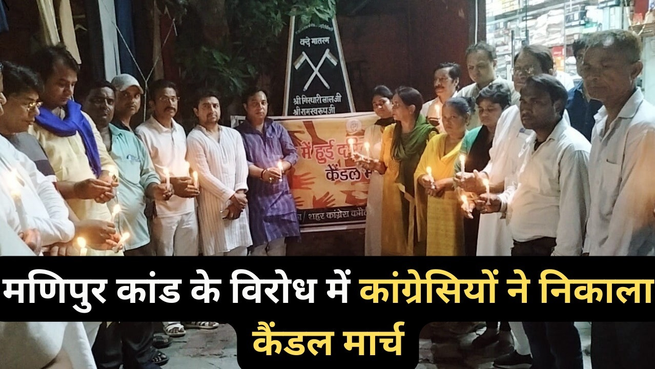 Hapur News Khabarwala24 News Hapur: कांग्रेस के पदाधिकारियों और सदस्यों ने मणिपुर कांड के विरोध में शनिवार शाम कैंडल मार्च निकाला। अतरपुरा चौराहा स्थित पूर्व प्रधानमंत्री जवाहर लाल नेहरू की मूर्ति से शुरू होकर कांग्रेस जन हाथों में मोमबत्तियां लेकर नारे लगाते हुए गोल मार्केट स्थित शहीद स्मारक पहुंचे। इस दौरान कांग्रेस जनों ने मणिपुर सरकार और केंद्र सरकार के विरोध में जमकर नारे लगाए।