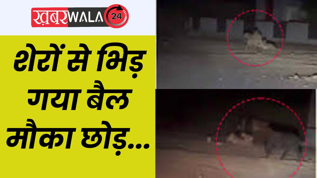 Khabarwala 24 News New Delhi: Junagadh Lion Viral Video गुजरात के जूनागढ़ में खुले में शेर घूमते दिख जाएं तो इसमें कोई नई बात नहीं है। जूनागढ़ समेत आसपास के कई इलाकों में शेर रिहायशी इलाकों में भ्रमण करते हैं, जिनके कई वीडियो सामने आ चुके हैं। इस वक्त एक हैरान करने वाला वीडियो वायरल हो रहा है, जिसमें दो शेर एक गाय का शिकार करने में लगे थे तभी बैल पहुंच गया और फिर शेर की हालत खराब हो गई।