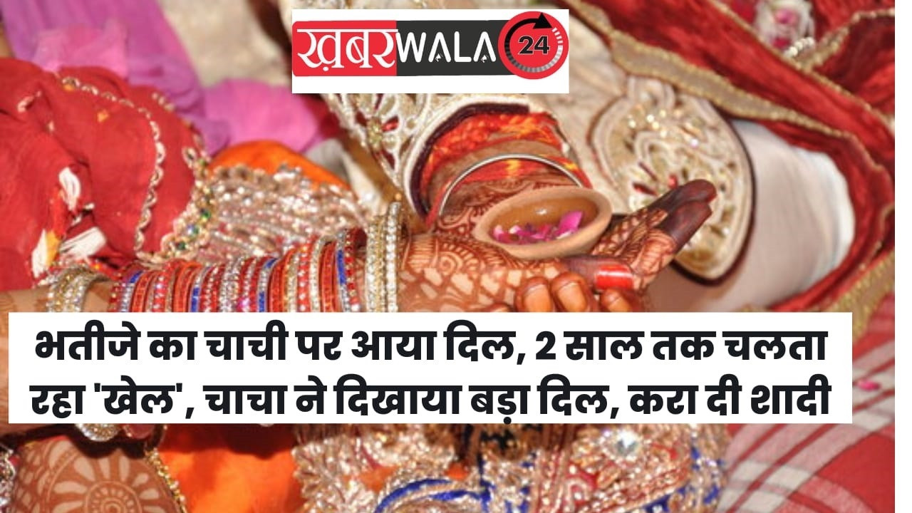 Khabarwala24 News Bhagalpur : Love Marriage कहते हैं प्यार की कोई उम्र नहीं होती है। प्यार की आपने कई कहानी खूब सुनी होगी और कई प्रेम विवाह देखे भी होंगे, आइए हम आपको बिहार के भागलपुर का एक अजब-गजब मामले के बारे में बताते हैं। भागलपुर के सुल्तानगंज थाना क्षेत्र के एक गांव में भतीजे को अपनी चाची से प्यार हो गया। चाची भी अपने पति के लिए सात फेरे और कसमों को भूल करकर भतीजे के साथ ही भविष्य के सपने देखने लगी। दोनों के बीच दो साल तक सब चलता रहा। आखिरकार अंत में चाचा ने ही भतीजे की शादी उसकी चाची से करा दी। बीते शनिवार (3 जून) की रात का ये मामला है। रविवार (4 जून) को शादी कराने का वीडियो वायरल होना शुरू हुआ.