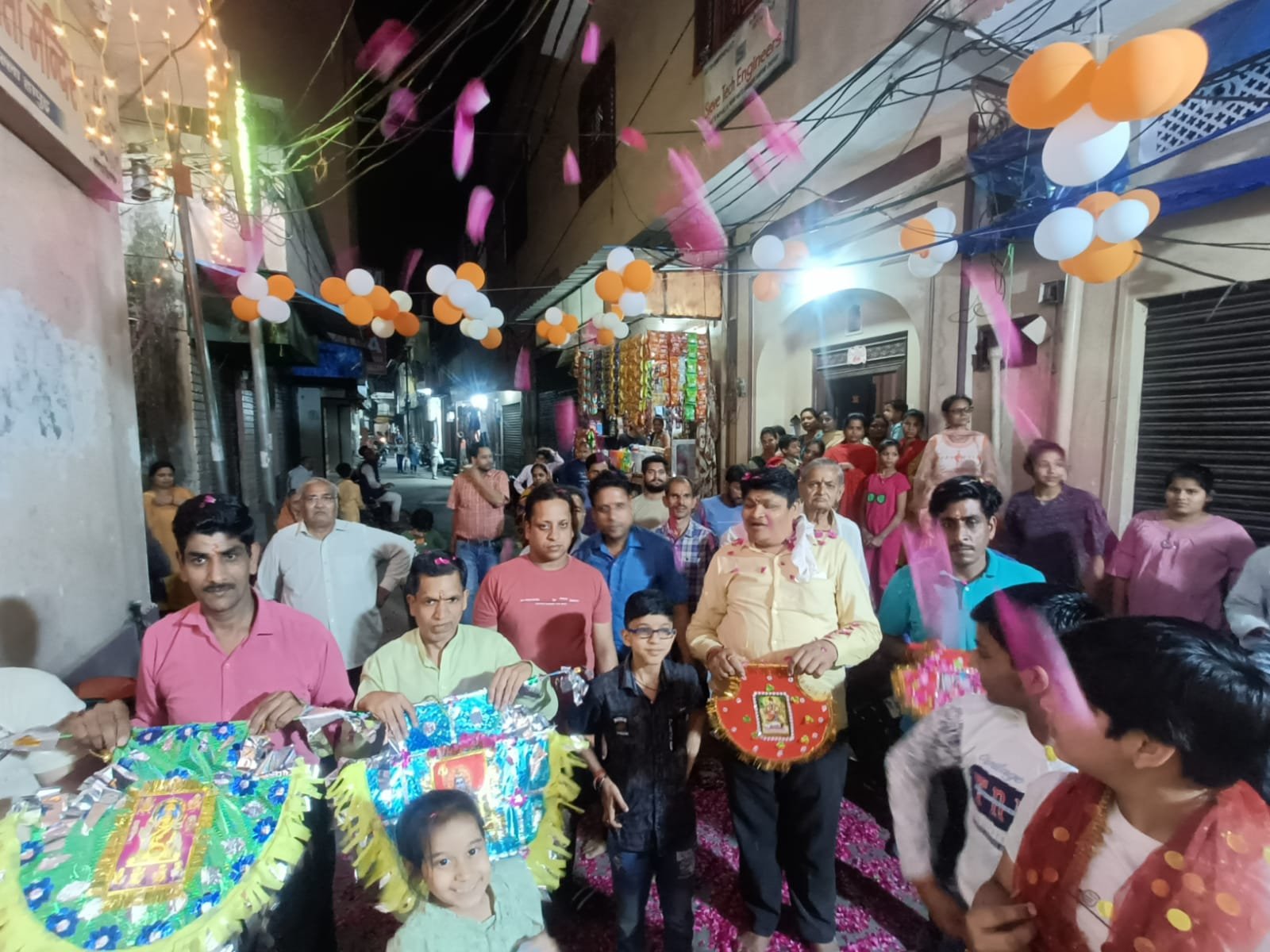 नगर के माता मोहल्ला स्थित मंदिर से बृहस्पतिवार को बड़ी संख्या में श्रद्धालु पहुंचे। मंदिर में पूर्जना की गई। इसके बाद श्रद्धा भाव के साथ देवी मां का पंखा निकाला गया। पंखा यात्रा में भजनों पर श्रद्धालु जमकर थिरके। पंखा यात्रा में मनमोहक झांकियां निकाली गई। जिनकी सभी ने सराहना की। ढोल बाजों के साथ पंखा यात्रा निकाली गई। पंखा यात्रा मंदिर से शुरू होकर कसेरठ बाजार, छोटी मंडी, बड़ी मंडी, सर्राफा बाजार होते हुए वापस माता मंदिर मंदिर में पहुंचा। पंखा यात्रा में बड़ी संख्या में श्रद्धालुओं ने भाग लिया और मां का गुनगान किया। देर रात तक मंदिर में श्रद्धालुओं की पूजा अर्चना करने के लिए भीड़ लगी रही। महिलाओं और बच्चों ने भी बड़ी संख्या में भाग लिया और मां का गुणगान किया। इस अवसर पर प्रधान अनुज कंसल, योगेंद्र अग्रवाल मोनू, कमल अग्रवाल, प्रशांत गोयल, दीपक ठाकुर, सुनील, बंटी कंसल, पंकज, अमित आदि मौजूद थे।