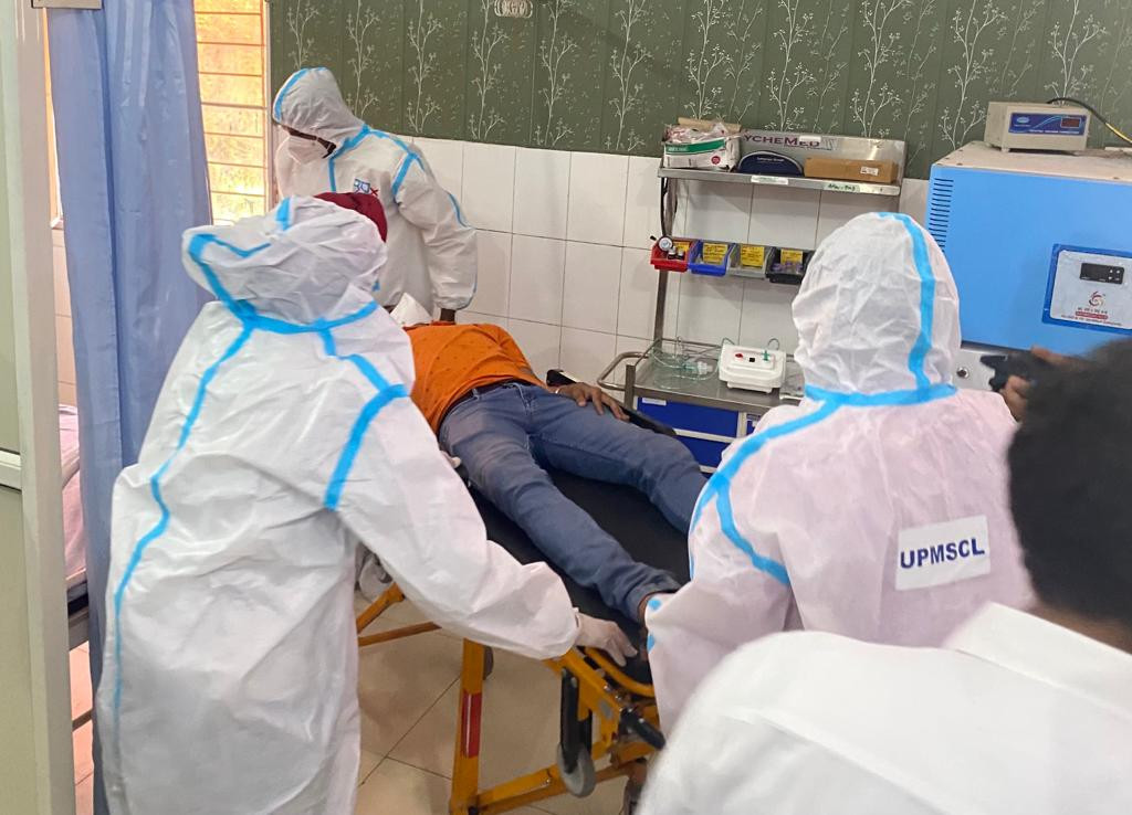 इसलिए सरकारी अस्पतालों में कोरोना के उपकरण और वहां मौजूद संसाधानों की तैयारियों को लेकर अपर मुख्य चिकित्साधिकारी डाक्टर जेपी त्यागी पहुंचे। उनकी देखरेख में माकड्रिल का आयोजन किया गया। इसके लिए 108 एंबुलेंस को अस्पताल में खड़ा कराया गया और वहां से एक मरीज में कोरोना जैसे लक्षण दिखाई देने पर उसे तत्काल पीपी किट पहने एंबुलेंस कर्मियों और अस्पताल के स्टाफ ने तत्काल उसे सुविधा मुहैया कराते हुए तत्काल द्वितीय तल पर बने आइसोलेशन वार्ड में भर्ती कराया गया। जहां पर सबसे पहले मरीज को आक्सीजन लगाई और उसके बाद उसकी देखरेख शुरू की गई।