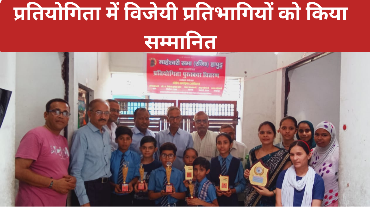Hapur News Khabarwala24 News Hapur : यूनिवर्स पब्लिक स्कूल में पिछले दिनों हुई सुंदर लेख प्रतियोगिता एवम इमला प्रतियोगिता के विजेता प्रतिभागियों को माहेश्वरी सभा (रजि०) हापुड़ द्वारा पुरस्कृत किया गया।