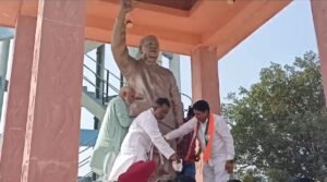 महापुरुषों की प्रतिमाओं पर की सफाई