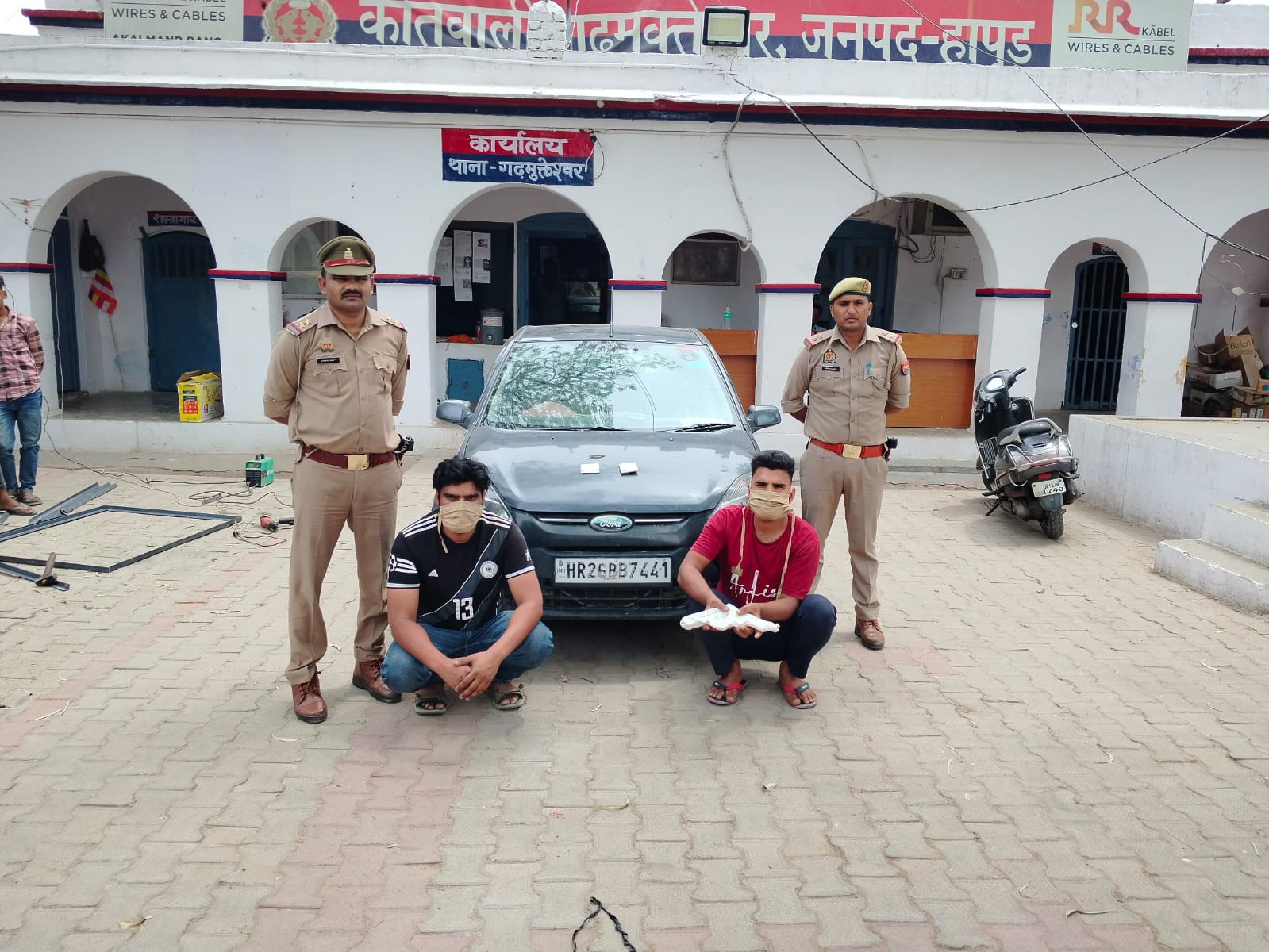 khabarwala 24 News Garhmukteshwar (Hapur):(विशाल शर्मा) Garhmukteshwar Crime News गढ़मुक्तेश्वर कोतवाली पुलिस ने अंतर्जनपदीय गिरोह के दो शातिर सदस्यों को गिरफ्तार कर चोरी का सामान बेचकर जुटाई नगदी के साथ ही तमंचा और वारदात में प्रयुक्त कार बरामद की है।