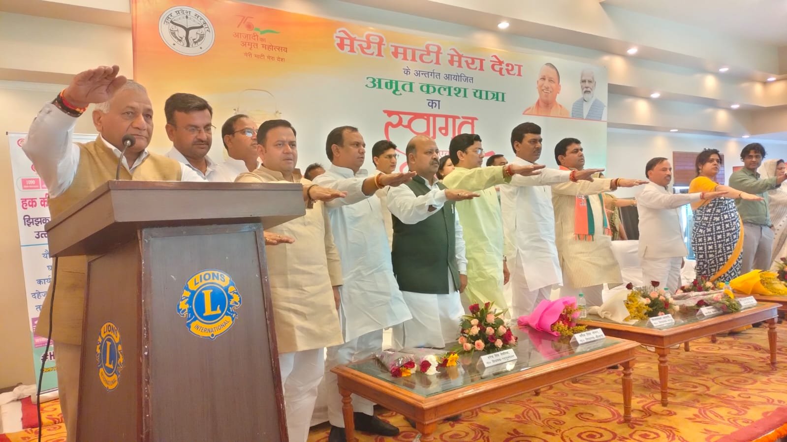 इससे पूर्व सभी विकास खंडो से भव्य अमृत कलश यात्रा निकाली गई और मनोहर रीजेंसी पहुंची। जहां केंद्रीय राज्यमंत्री जनरल वीके सिंह द्वारा पंच प्रण की शपथ दिलाई गई। यात्रा में स्कूली बच्चें, एनसीसी कैडेट्स और भारत स्काउट एंड गाइड के युवा चल रहे थे। कार्यक्रम के दौरान रामनिवास इंटर कॉलेज व सरस्वती स्कूल के छात्रों द्वारा सांस्कृतिक कार्यक्रम प्रस्तुत किए गए।
