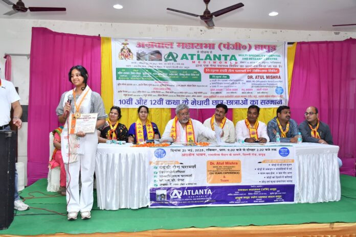 Khabarwala 24 News Hapur: Hapur यूपी के जनपद हापुड़ में अग्रवाल महासभा हापुड़ के तत्वावधान में अटलांटा हॉस्पिटल में एक निःशुल्क स्वास्थ्य शिविर का आयोजन किया गया, जिसमें लगभग 125 मरीजों की जांच की गई। इसके साथ ही मेधावी छात्र-छात्राओं को सम्मानित करने के लिए एक भव्य समारोह भी आयोजित हुआ। इस कार्यक्रम में स्वास्थ्य सेवाओं और शिक्षा के क्षेत्र में उत्कृष्टता को बढ़ावा देने का संदेश दिया गया।