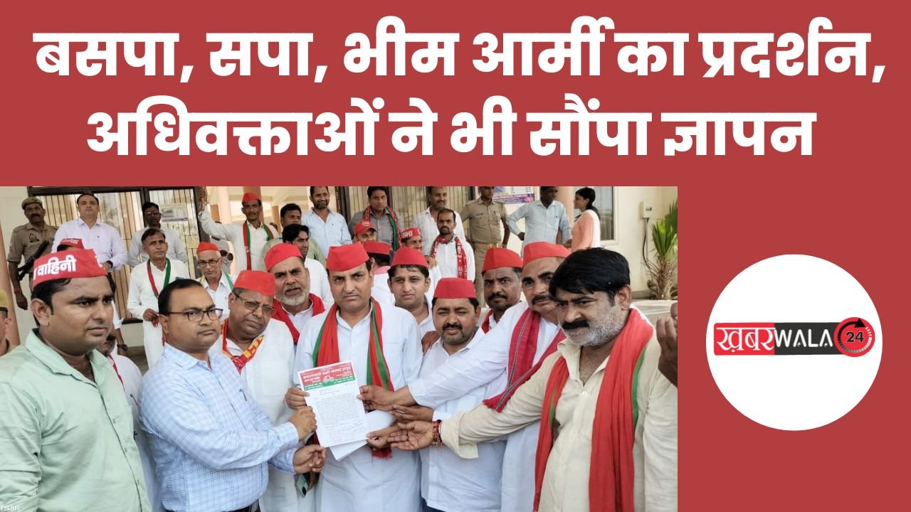 Khabarwala 24 News Hapur: Hapur सुप्रीम कोर्ट द्वारा एससी, एसटी आरक्षण के उपवर्गीकरण पर दिए गए फैसले के विरोध में बुधवार को बसपा, सपा, भीम आर्मी, हापुड़ बार एसोसिएशन व अन्य संगठनों ने राष्ट्रपति को संबोधित ज्ञापन जिला प्रशासन के अधिकारियों को सौंपा। इस दौरान संगठनों ने भारत बंद का आह्वान किया गया था। जिसको देखते हुए जिले में सुरक्षा व्यवस्था बेहद ही कड़ी की गई थी।
