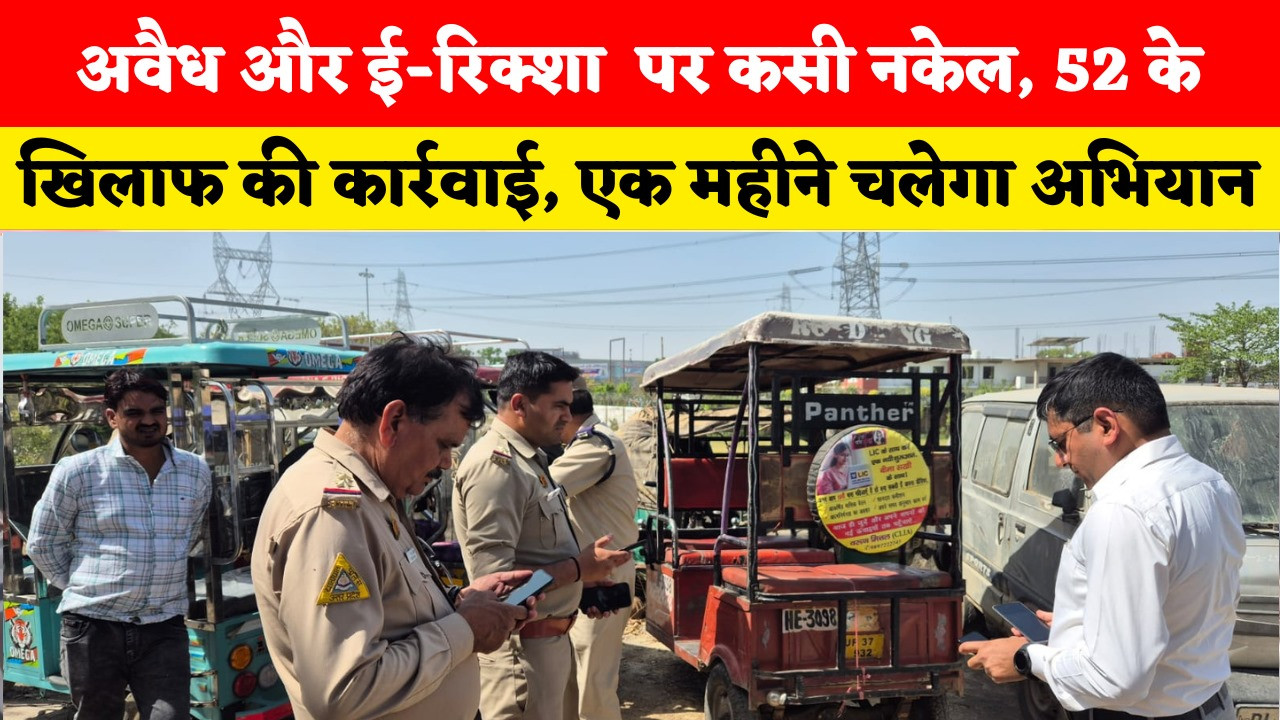 Khabarwala 24 News Hapur: Hapur परिवहन विभाग और यातायात पुलिस दवारा मुख्यमंत्री के निर्देश पर जनपद में मंगलवार को अभियान चलाया। टीम ने अवैध रूप से चल रहे 52 आटो और ई-रिक्शा को चालान और सीज किए गए हैं। इस कार्रवाई से अवैध रूप से आटो और ई-रिक्शा चालकों में अफरा तफरी मची हुई है।
