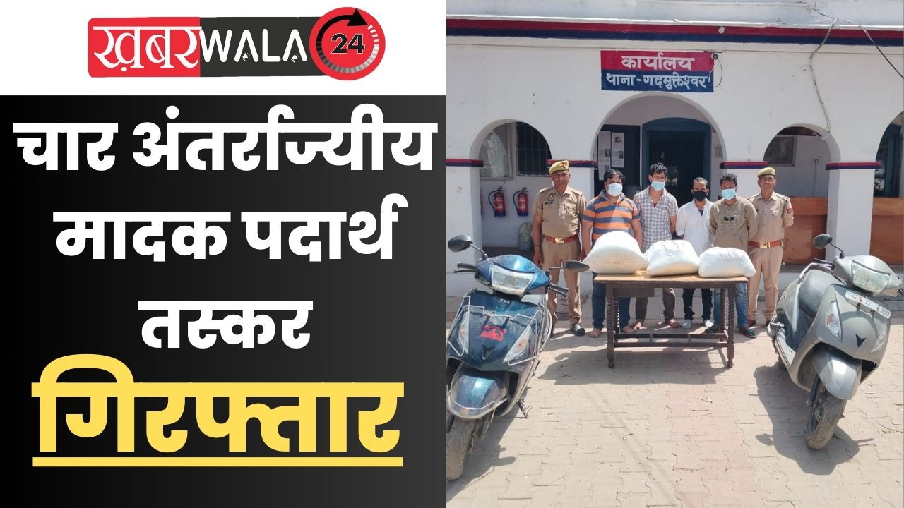 पुलिस ने जनपद में अपराध की रोकथाम एवं अवैध मादक पदार्थ तस्करों के विरुद्ध चलाए जा रहे अभियान के अन्तर्गत थाना गढ़मुक्तेश्वर पुलिस टीम द्वारा चैकिंग के दौरान अलग-अलग स्थानों से चार अंतर्राज्यीय मादक पदार्थ तस्करों को गिरफ्तार किया गया है, जिनके कब्जे से करीब 40 किलोग्राम अवैध गांजा (कीमत लगभग 12 लाख रुपये) व घटना में प्रयुक्त स्कूटी बरामद हुई है।