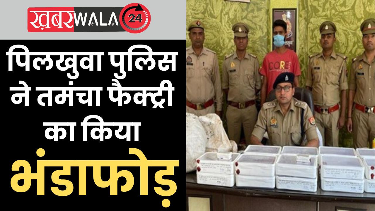 सीओ पिलखुवा जितेंद्र कुमार शर्मा ने बताया कि पिलखुवा पुलिस परतापुर मार्ग पर संदिग्ध वाहनों और संदिग्ध लोगों की चेकिंग कर रही थी। इसी बीच मुखबिर से सूचना मिली कि मूर्ति देवी कालेज के सामने एक बंद मकान में एक व्यक्ति अवैध रूप से शस्त्र निर्माण का कार्य कर रहा है। इस सूचना पर पुलिस टीम तुरंत मौके पर पहुंची। पुलिस ने एक आरोपी को गिरफ्तार कर बड़ी संख्या में बने और अधबने तमंचे बरामद किए हैं। गिरफ्तारी का स्थानः- मूर्ती देवी इन्टर कालेज के सामने बंद मकान से।