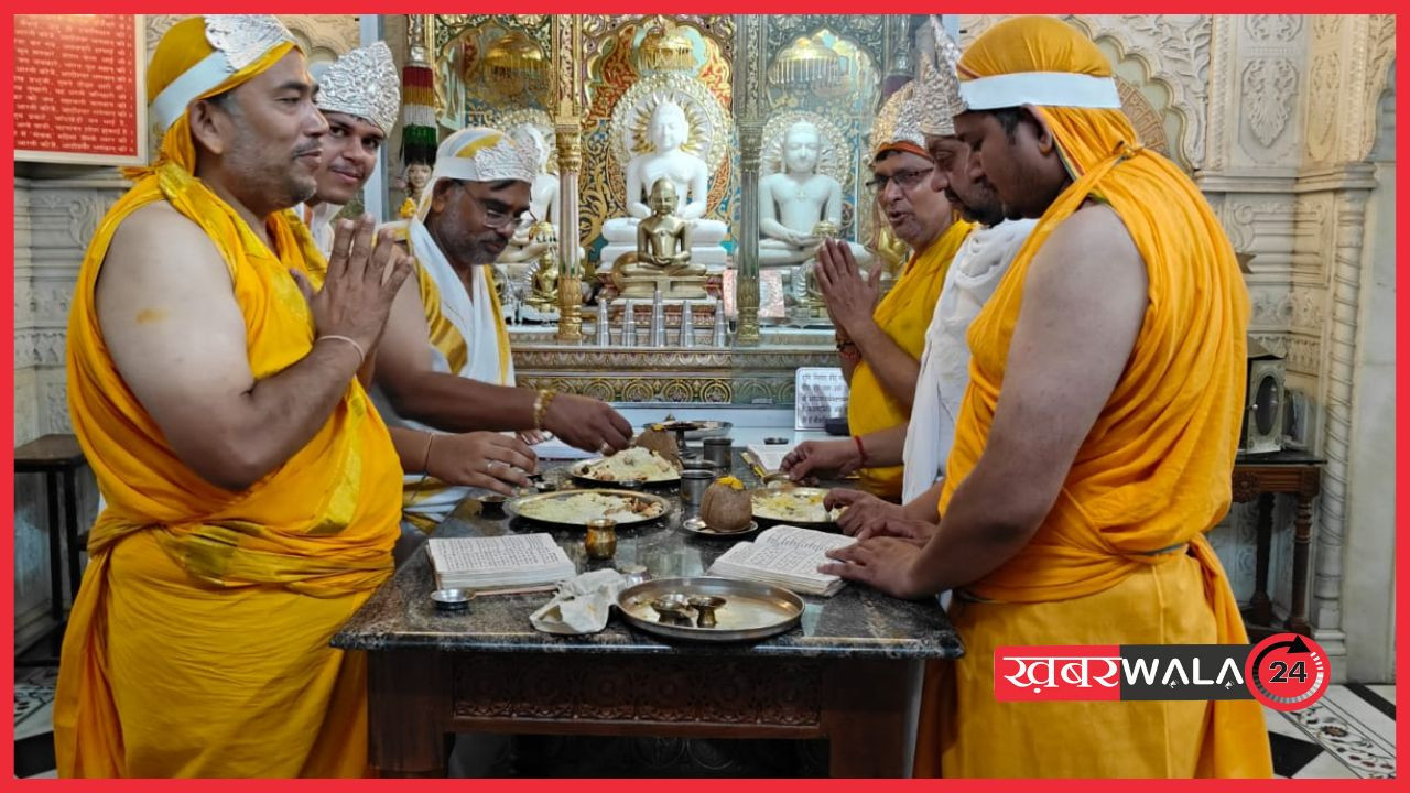 Khabarwala24 News Hapur: (तुषार जैन) हापुड़ के श्री 1008 आदिनाथ दिगंबर जैन मंदिर, कसेरठ बाजार में पर्व राज दशलक्षण पर्व के शुभ अवसर पर भव्य धार्मिक आयोजन संपन्न हुआ। सांगानेर से पधारे विद्वान रोहित जैन शास्त्री जी के सान्निध्य में संगीत की मधुर ध्वनि के साथ यह कार्यक्रम आयोजित किया गया। इस अवसर पर प्रातःकाल से मंदिर में अभिषेक, शांति धारा, पूजा और अर्चना के विधान हुए, जिसमें बड़ी संख्या में श्रद्धालुओं ने उत्साहपूर्वक भाग लिया। आयोजन का संचालन श्री नरेंद्र संदीप जैन, आदि जैन और राहुल काव्य जैन ने किया।