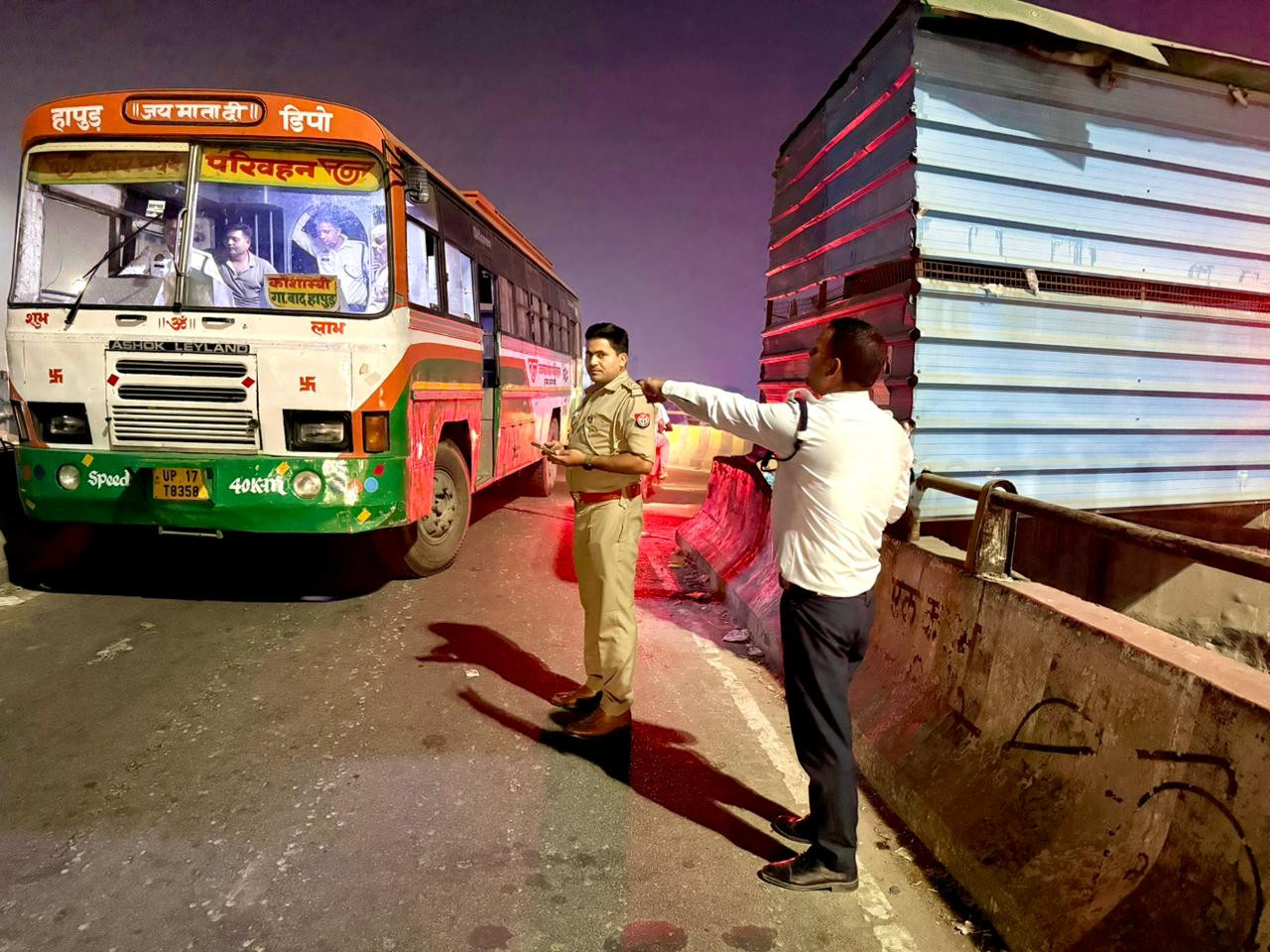 Khabarwala 24 News Hapur:यूपी के जनपद हापुड़ (Hapur)में कोतवाली नगर क्षेत्र में मेरठ रोड फ्लाईओवर पर एक अनियंत्रित रोडवेज बस की चपेट में आने से यातायात पुलिसकर्मी बाल-बाल बच गया। घटना उस समय हुई जब हापुड़ डिपो की बस मेरठ की ओर जा रही थी। बताया जा रहा है कि बस चालक नशे की हालत में था और बस पर नियंत्रण खो बैठा। गनीमत रही कि पुलिसकर्मी ने समय रहते खुद को हटाकर अपनी जान बचाई, वरना बड़ा हादसा हो सकता था।