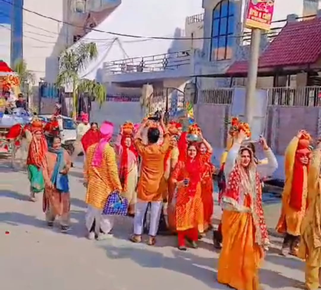 कलश यात्रा का पुष्प वर्षा कर किया स्वागत (Hapur)