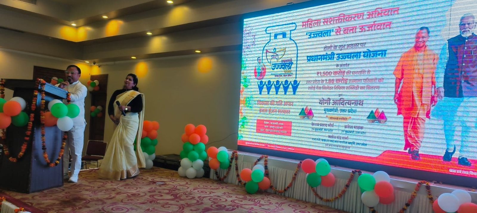 Khabarwala 24 News Hapur: Hapur News विधानसभा क्षेत्र हापुड़ के मनोहर रीजेंसी में खाद्य एवं रसद विभाग द्वारा ‘महिला सशक्तिकरण अभियान: उज्ज्वला से बना ऊर्जावान होली’ कार्यक्रम का आयोजन किया गया। इस अवसर पर प्रधानमंत्री उज्ज्वला योजना के अंतर्गत उत्तर प्रदेश के 1.86 करोड़ उज्ज्वला लाभार्थी परिवारों को रसोई गैस सिलिंडर रिफिल पर सब्सिडी वितरण की घोषणा का वर्चुअल प्रसारण किया गया।