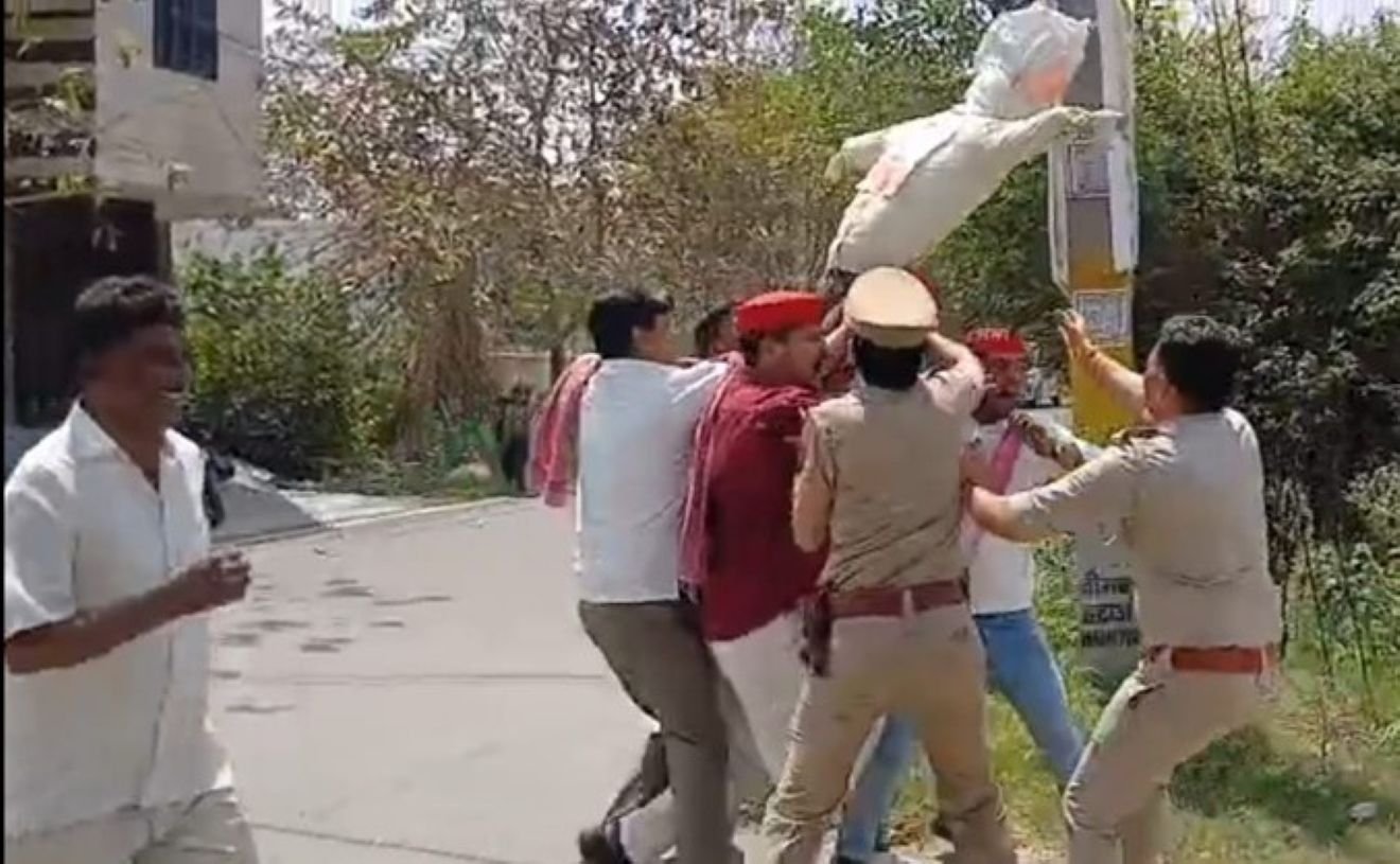 प्रदर्शन के दौरान सपा छात्रसभा के जिलाध्यक्ष रविंद्र यादव और अन्य कार्यकर्ता पीछे के रास्ते से पुतला लेकर कलक्ट्रेट परिसर में पहुंच गए। हालांकि, इसकी भनक पहले से मौजूद पुलिस को लग गई। जैसे ही कार्यकर्ता पुतला दहन की तैयारी करने लगे, पुलिस ने तुरंत कार्रवाई करते हुए दौड़कर पुतला छीन लिया।