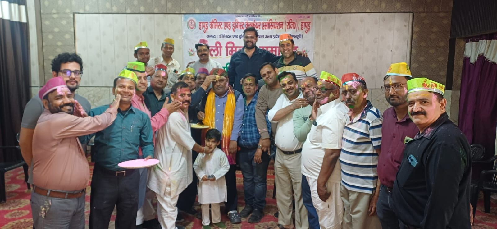 Khabarwala 24 News Hapur: Hapur Newsहापुड़ केमिस्ट एंड ड्रगिस्ट वेलफेयर एसोसिएशन (रजि.) द्वारा रविवार, 1 मार्च को मिलन पार्टी हॉल में भारतीय संस्कृति के रंगों से सराबोर “होली मिलन समारोह” का भव्य आयोजन किया गया। कार्यक्रम की अध्यक्षता जिलाध्यक्ष दिनेश त्यागी ने की, जिसमें जिले के बड़ी संख्या में दवा विक्रेताओं ने उत्साहपूर्वक भाग लिया।