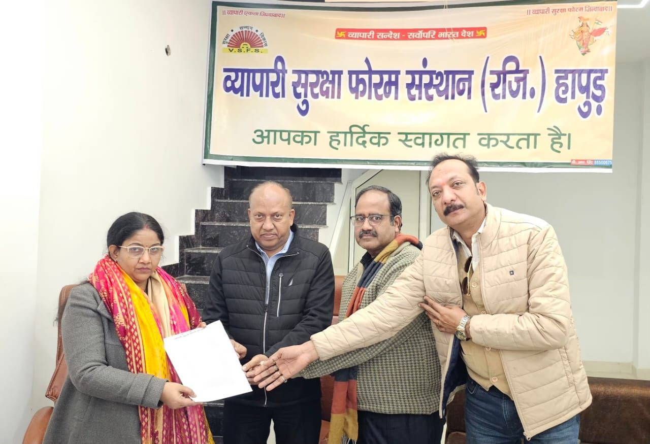Khabarwala 24 News Hapur: हापुड़ में नगरपालिका द्वारा भेजे जा रहे हाउस टैक्स नोटिसों को लेकर लोगों में आक्रोश बढ़ता जा रहा है। इसी क्रम में व्यापारी सुरक्षा फोरम संस्थान के जिलाध्यक्ष अरुण कुमार ने भाजपा की जिलाध्यक्ष कविता माधरे को ज्ञापन सौंपकर नगरपालिका पर वार्षिक मूल्यांकन अनुचित रूप से 2 से 3 गुना बढ़ाने का आरोप लगाया है।