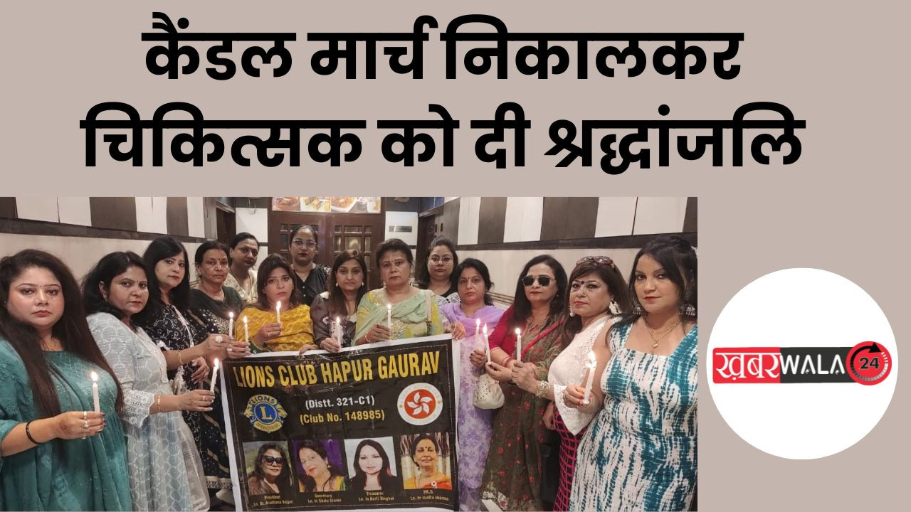 Khabarwala 24 News Hapur : Hapur लायंस क्लब हापुड़ गौरव के तत्वावधान में यहां रेलवे रोड स्थित सिटी प्लाजा में बंगाल के हॉस्पिटल में कार्यरत एक डॉक्टर के साथ हुई जघन्य घटना पर रोष व्यक्त करने के साथ साथ कैंडल प्रज्ज्वलित करके दिवंगत आत्मा को श्रृद्धांजलि अर्पित की गई।