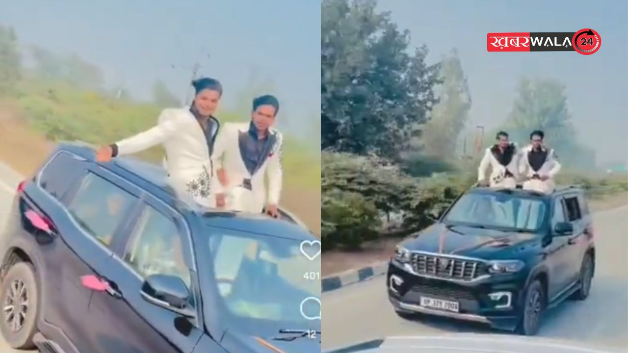 वीडियो में एक सफेद स्कॉर्पियो कार हाईवे पर तेज रफ्तार से दौड़ रही है। कार की सनरूफ से दो युवक ऊपर की ओर निकले हुए हैं। दोनों खड़े होकर एक-दूसरे की ओर इशारे कर रहे हैं और मुस्कुराते हुए पोज दे रहे हैं। यह वीडियो किसी पीछे चल रहे वाहन या राहगीर ने बनाया लगता है। व्यस्त नेशनल हाईवे पर इस तरह का स्टंट बेहद जोखिम भरा है, क्योंकि यहां हमेशा ट्रक और भारी वाहन चलते रहते हैं।