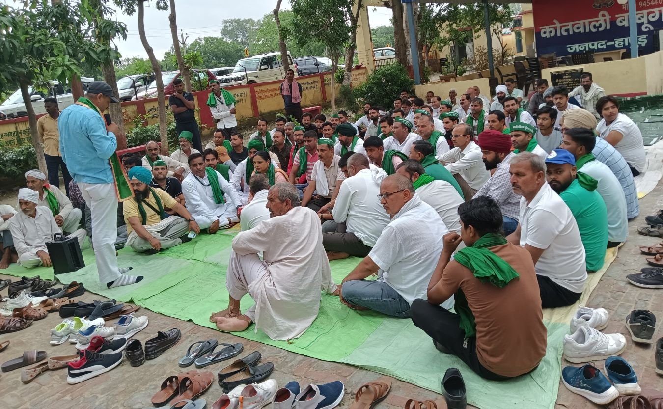 Hapur के बाबूगढ़ में भाकियू जनशक्ति का थाने पर धरना