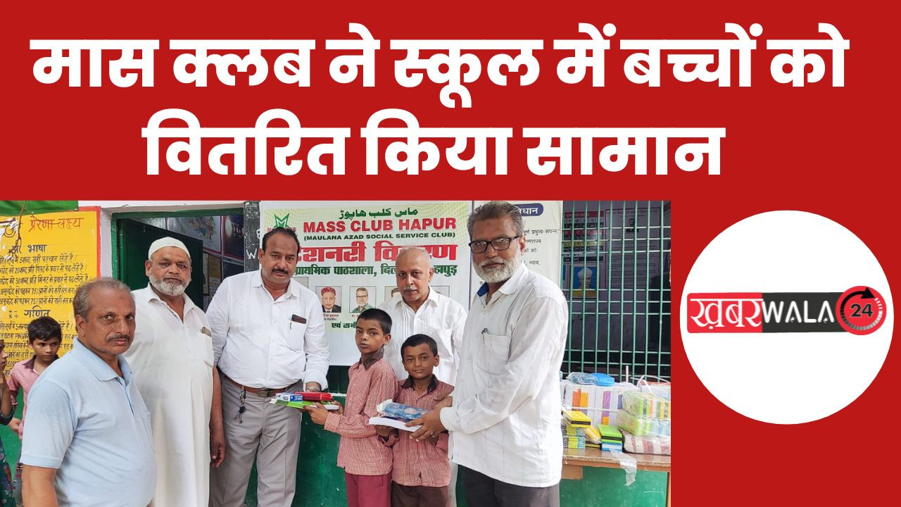 Khabarwala 24 News Hapur : Mass Club Hapur मास क्लब हापुड़ के द्वारा हमीद कन्या पाठशाला के बच्चों को कापी, पैंसिल, रबड़, कटर, कलर डिब्बी आदि स्टेशनरी का वितरण किया गया।